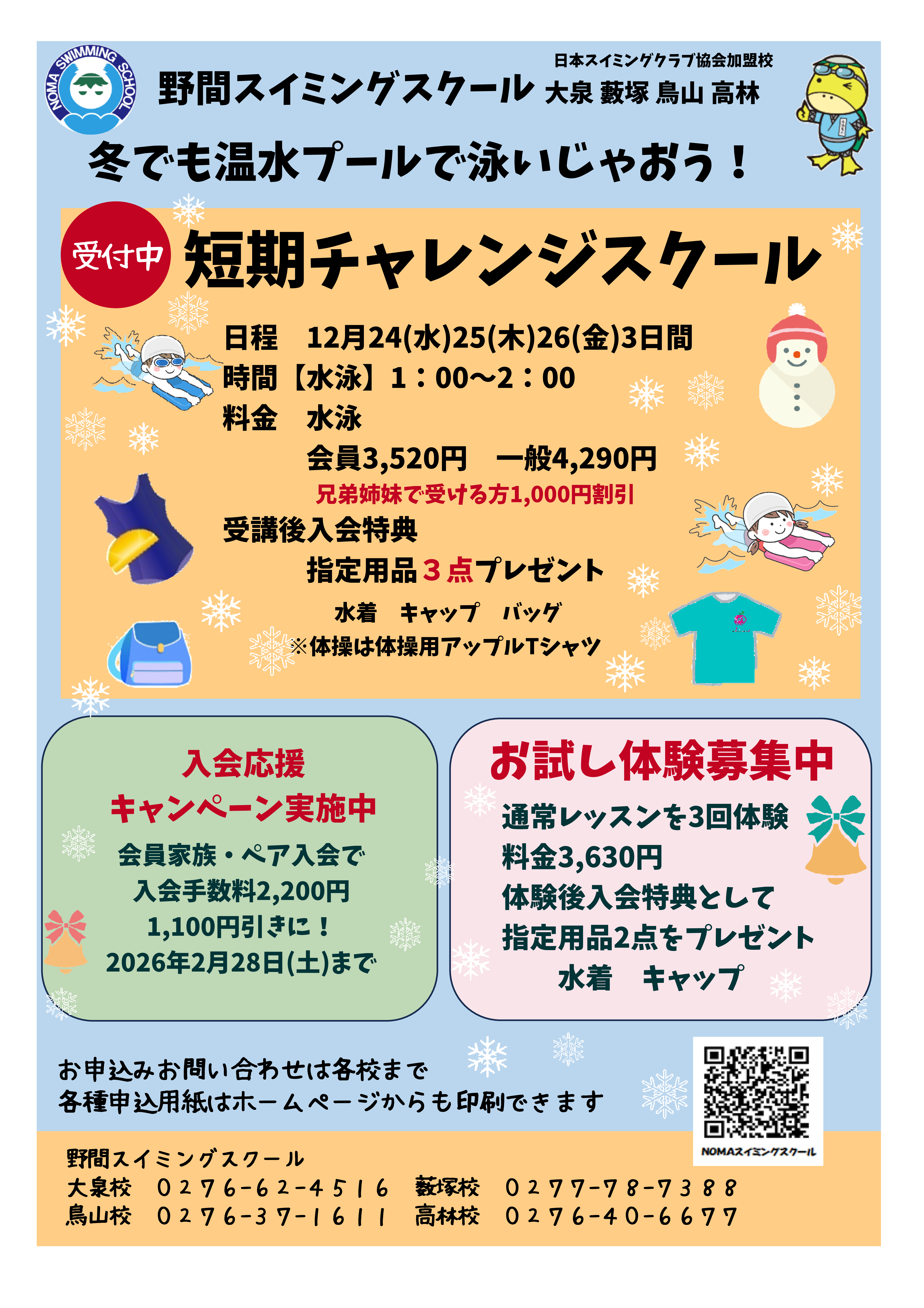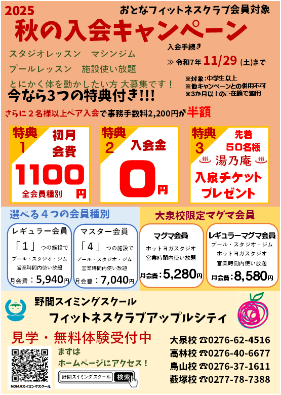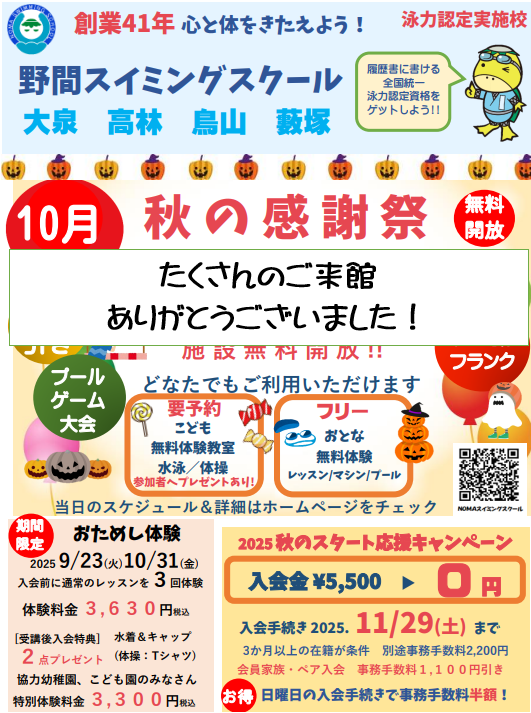 〒370‐0514 群馬県邑楽郡大泉町朝日5-25-19 野間スイミングスクール各校連絡先